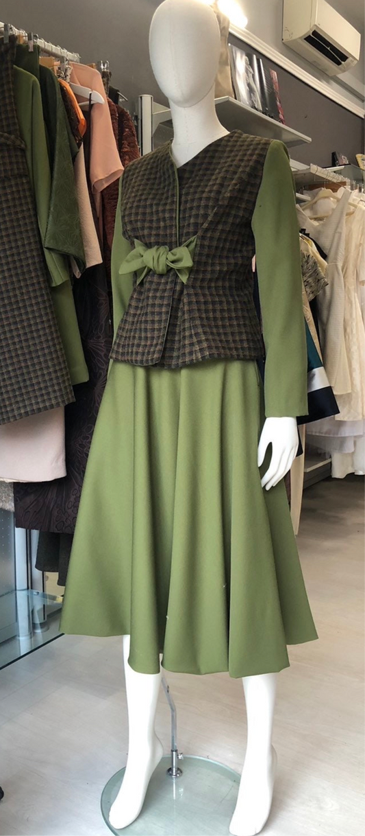 La collezione A/I 25/26 è disponibile esclusivamente su misura e personalizzabile nei tessuti. Ho selezionato deadstock di alta moda – lane e broccati nei toni del marrone e del verde oliva – per creare capi ispirati agli anni ’30-’50: pratici ed eleganti per il giorno, raffinati e unici per la sera.
