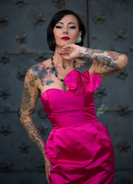 Ogni abito nasce in sartoria, cucito a mano con tessuti naturali e/o deadstock provenienti dall’alta moda. Sono pezzi unici o su misura, ispirati alle linee senza tempo degli anni ’30-’50 e reinterpretati per chi ama distinguersi con eleganza.