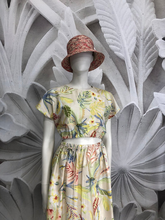 I miei completi, dalle gonne agli short, sono realizzati artigianalmente in tessuti naturali e deadstock, con capi rigorosamente coordinati per creare look armoniosi e distintivi.