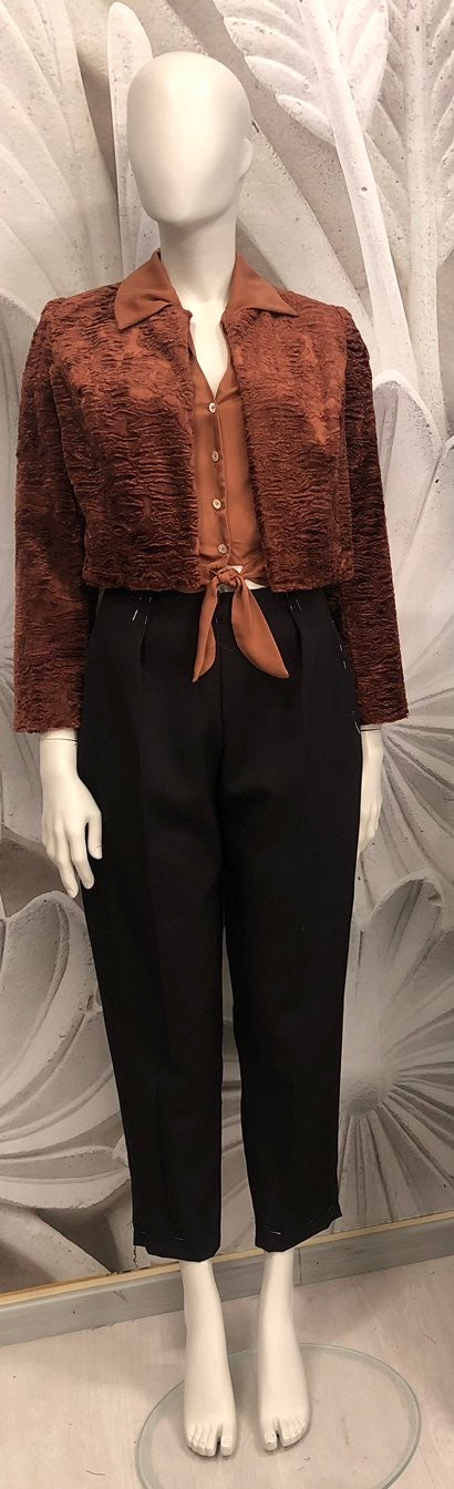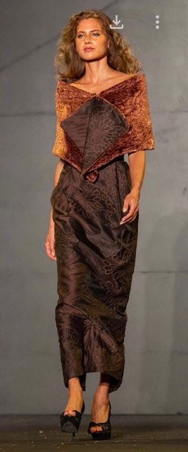 Per la stagione A/I 25/26 ho selezionato preziosi tessuti deadstock di alta moda, lane e broccati nei toni caldi del marrone e nelle sfumature sofisticate del verde oliva, che si intrecciano in armonia.