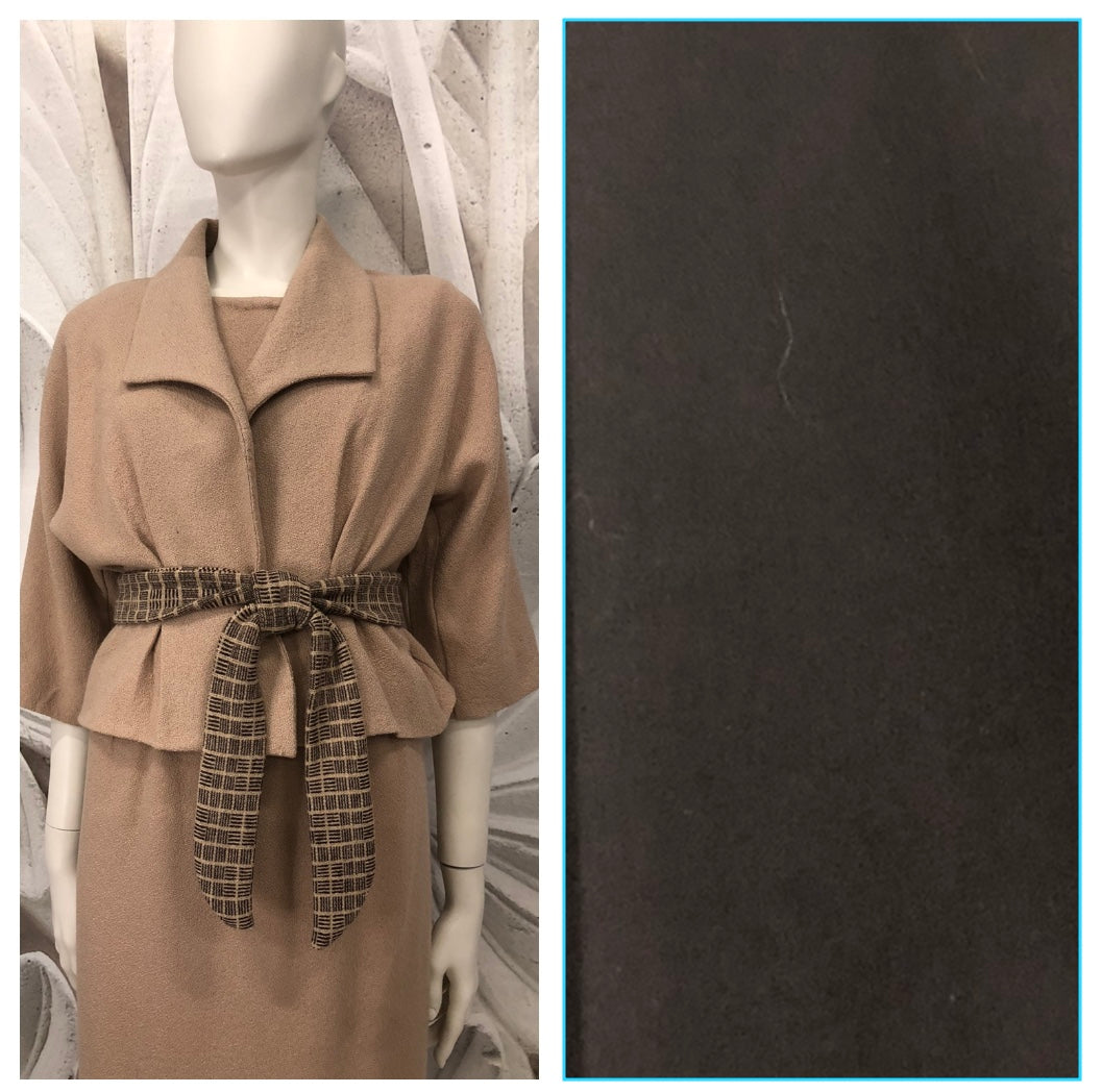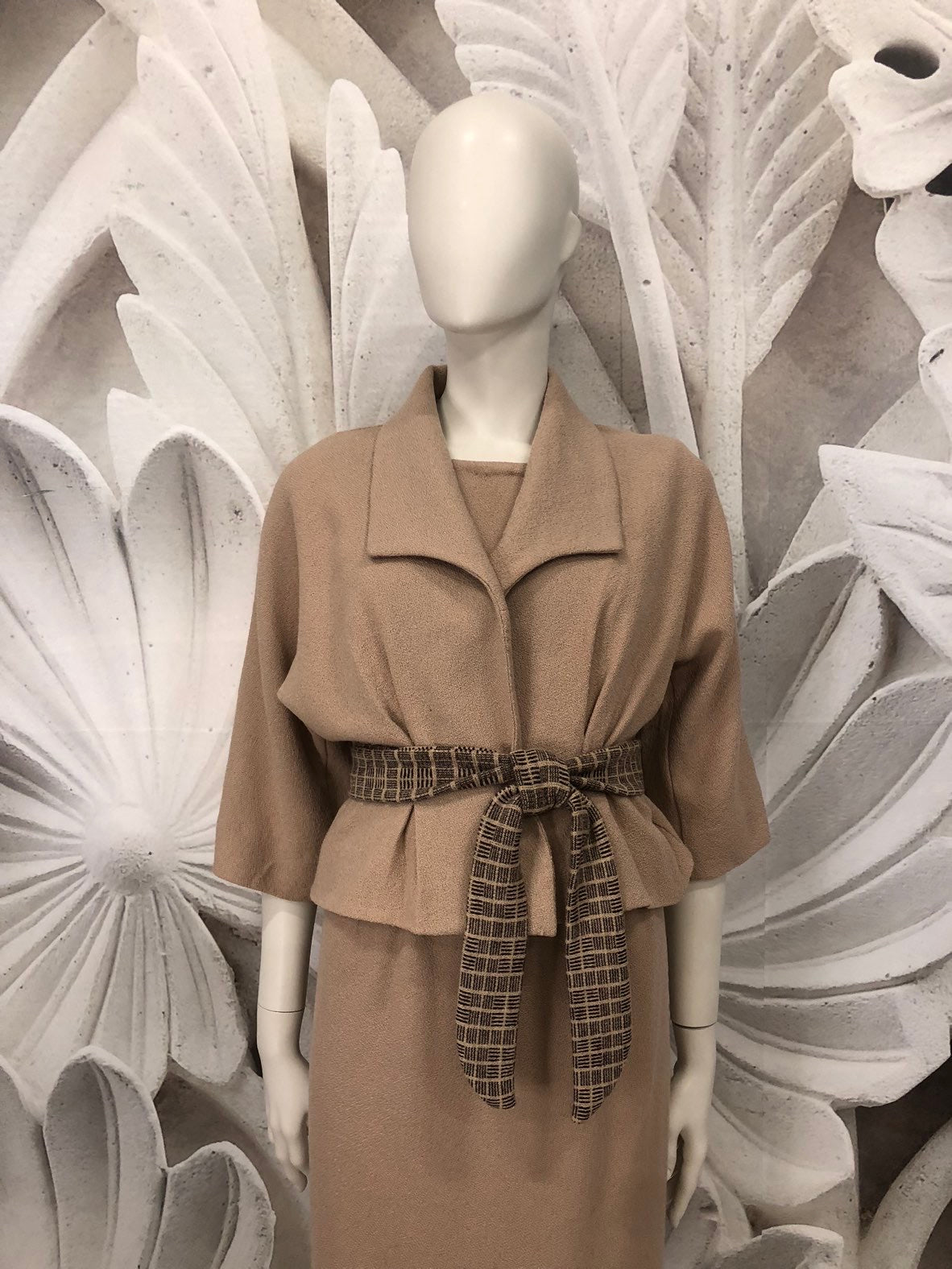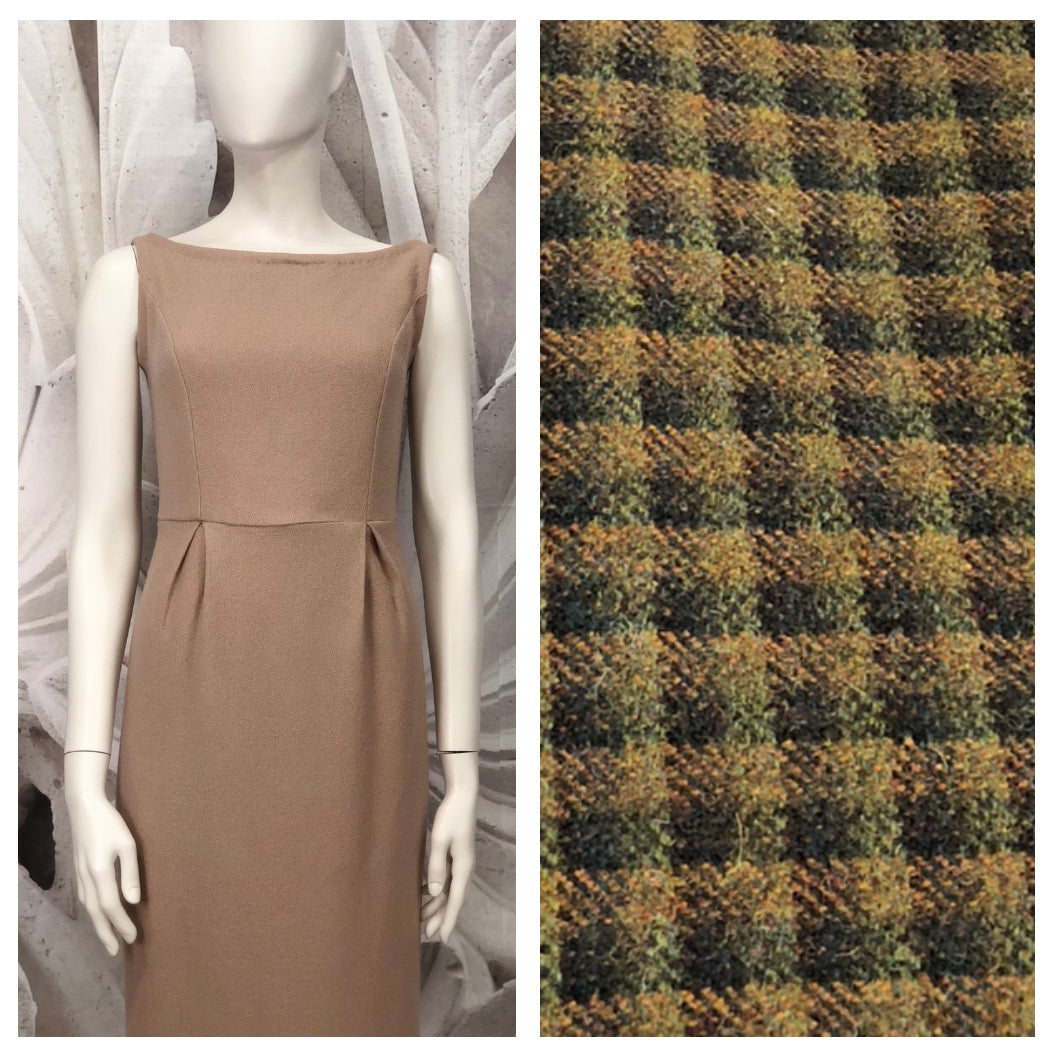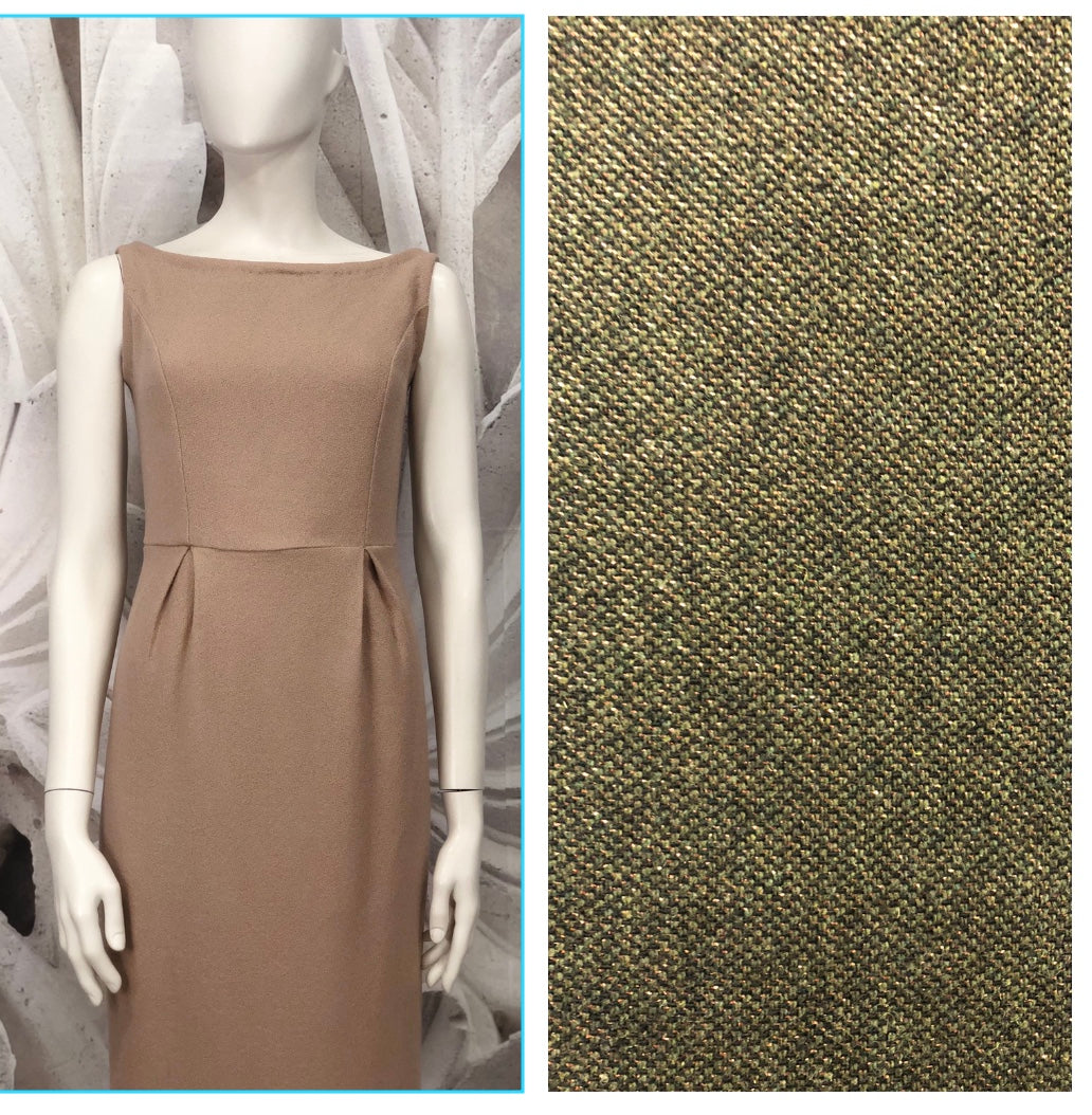 Il completo Kelly, ispirato all’eleganza senza tempo degli anni ’50, è composto da un raffinato tubino smanicato con scollo a barca e lunghezza midi, abbinato a una giacca con maniche a kimono da stringere in vita con cintura. Realizzato in pregiato crepe beige deadstock proveniente dall’alta moda, può essere personalizzato scegliendo tra altre varianti di tessuto deadstock: verde oliva, marrone oppure un sofisticato motivo a scacchi nei toni marrone/verde. Essendo tessuti deadstock la disponibilità e’ limitata.